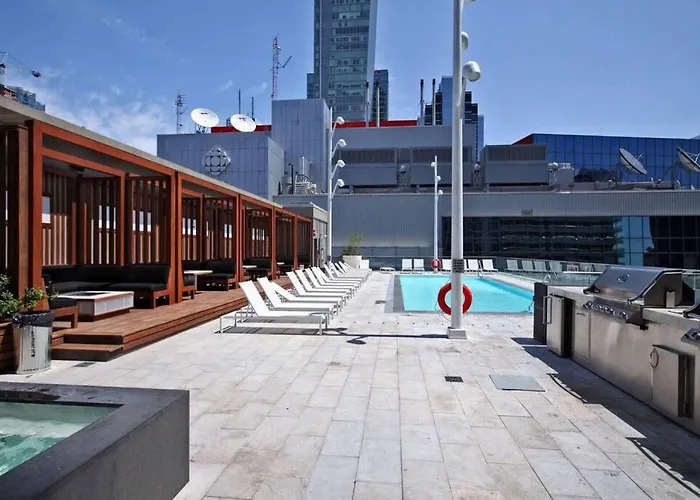 1-pokojowy Chic 1-Br Condo; Parking Included; Downtown Core mieści się w dzielnicy Centrum Toronto posiada odkryty basen. Parki na Wyspach Torontońskich znajduje się w odległości prawie 25 min spacerem od apartamentu o powierzchni 58 m^2. Akwarium Ripley's Aquarium of Canada jest również niedaleko.
